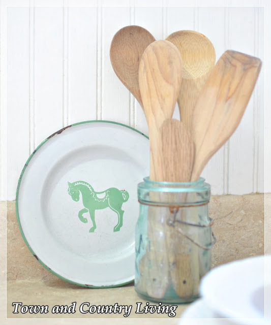 I love everything about your kitchen. That enamelware plate with the horse is so unique. Would love to find one just like it. Great decorating:)