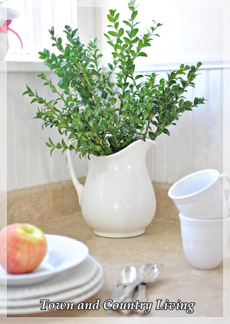 Such simple beauty, love the boxwood, I should go cut some off of my hedge? Yes I decorate my kitchen 1st thing.