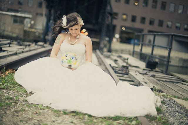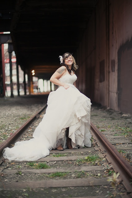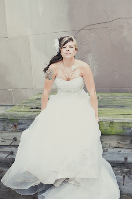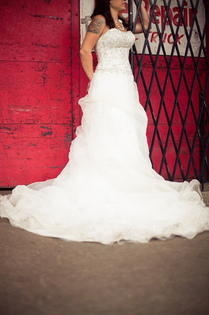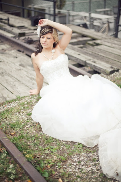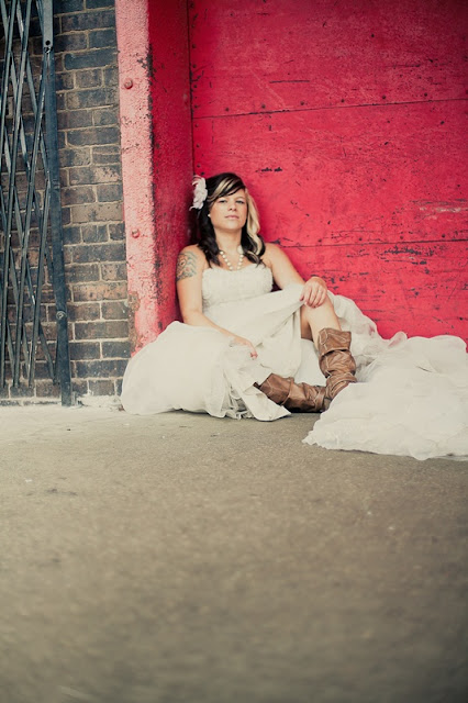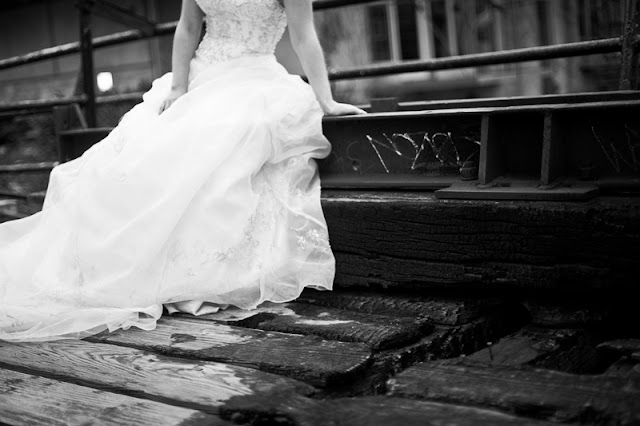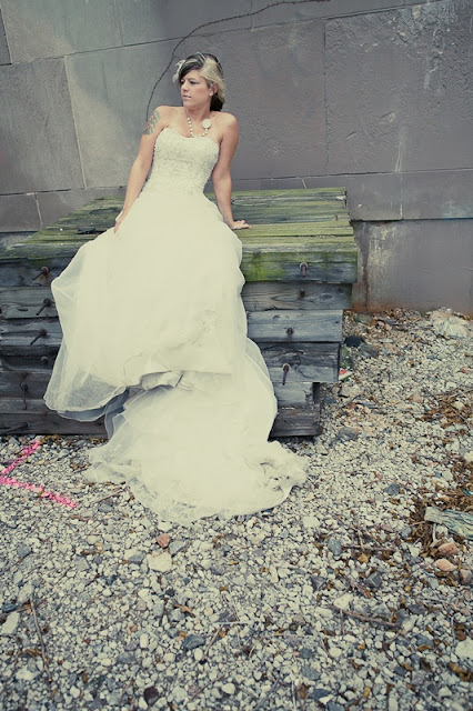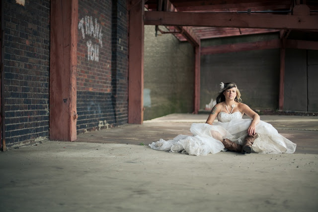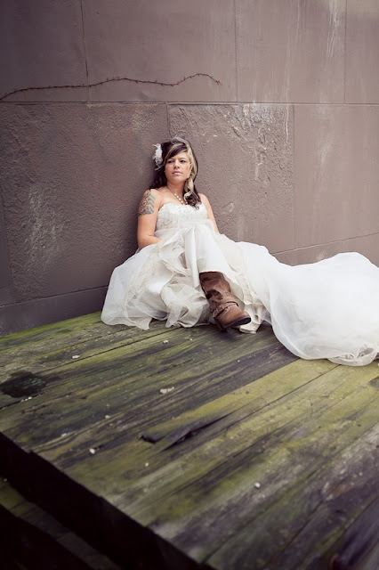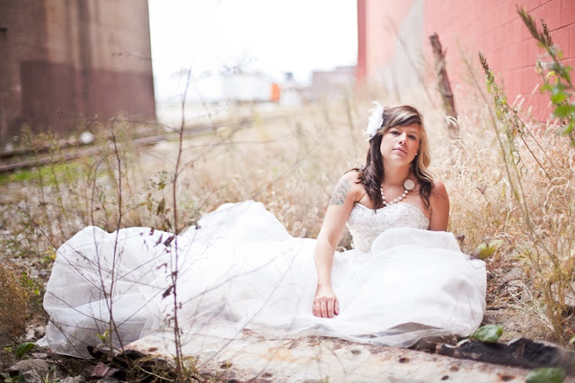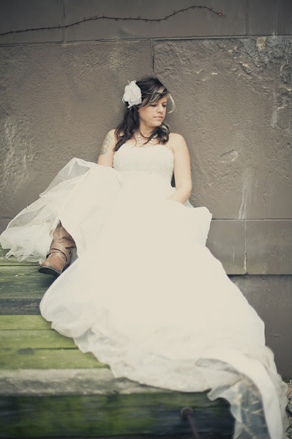 Love the old and weathered stuff with the foofy lovliness of the wedding dress.