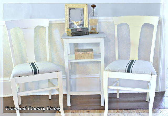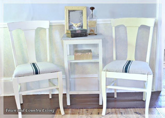 Nice job! I love the idea of creating faux grain sack! You certainly got a great deal on those chairs. I would have snatched them up too!