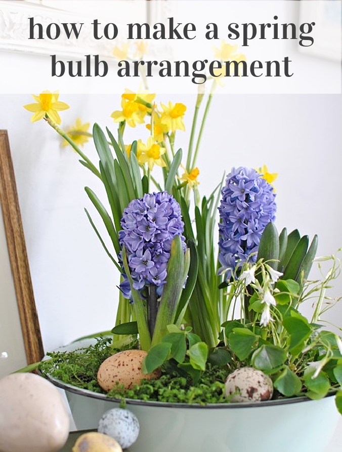 Spring bulbs are some of my favorite flowers. They hold a promise of warmer, longer days to come! I found some pretty bulbsย at the store and decided to group them together in one planting in my new enamelware bowl to create an easy DIY spring bulb arrangement.