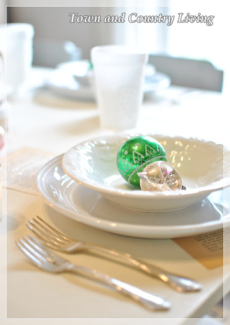 Love your tablescape…the bright green ornaments really give a great pop of color!