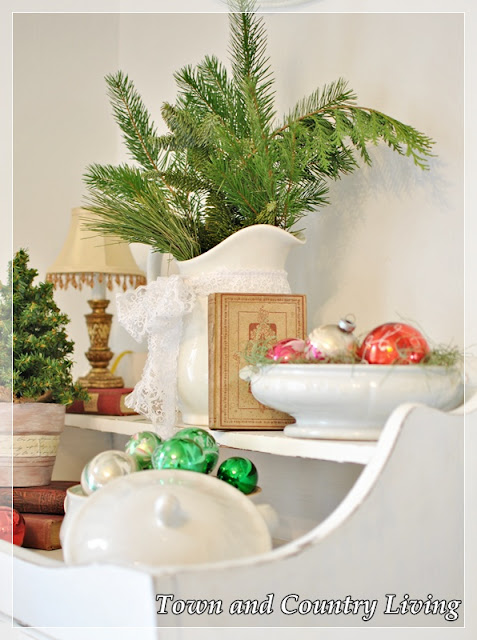 It is all so pretty, I just love the vintage ornaments. Vintage ornaments come in the best colors.