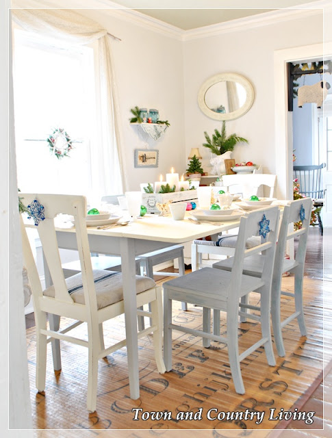How beautiful! Looks like a cozy winter wonderland! I love the centerpiece and all the ornaments, too! Beautiful! Merry Christmas!