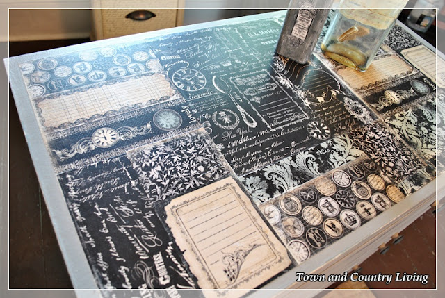 I decoupaged the top of each dresser with scrapbook paper I had lying around.