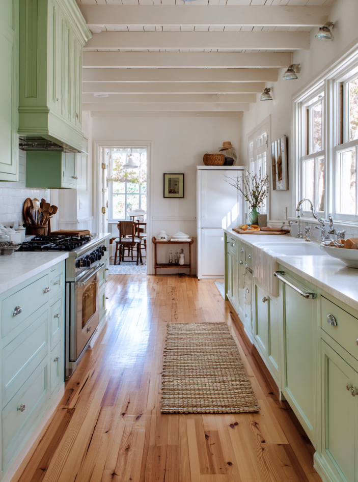 Wow, all these green and white rooms are so refreshing! Love the kitchens and baths! Makes me think of spring!