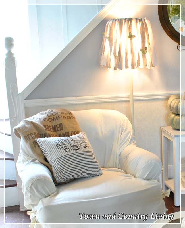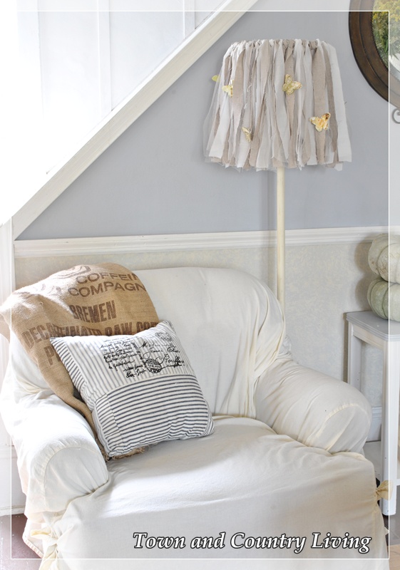 Adorable! I’ve got 2 lampshades that have been awaiting makeovers, but I still need to find lamps for both of them. Your lamp looks perfect with that chair and the pillows on the chair.