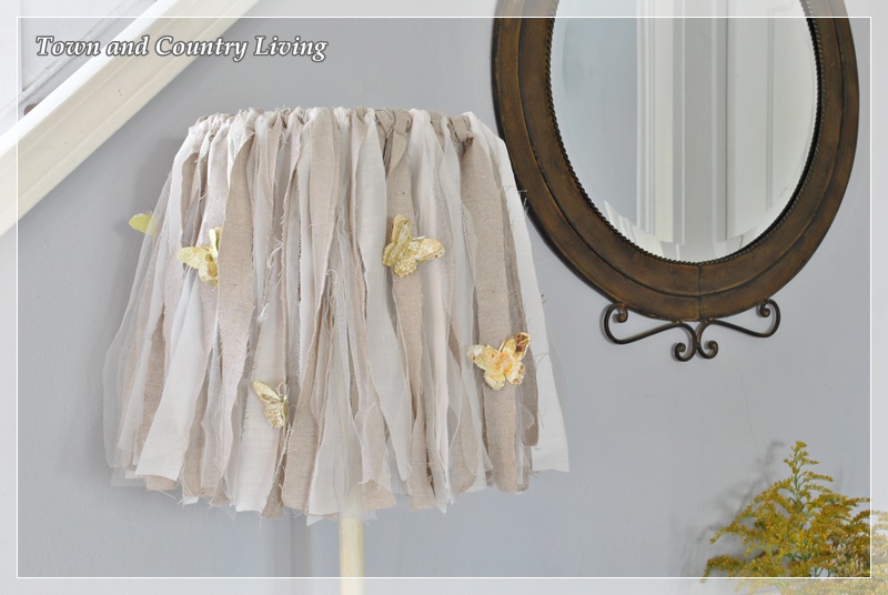 One of my favorite local stores has some truly creative pieces within its walls, and one such piece was a very cute, shabby lampshade made with strips of fabric. I really wanted it … but it was $55. I gave it a good once-over and decided, “yep, I can make that myself.” And so I did.