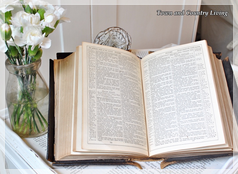 What a perfect vignette! I just love that vintage Bible with the unique flapped covers; regardless of its eBay worth, it’s a keeper!