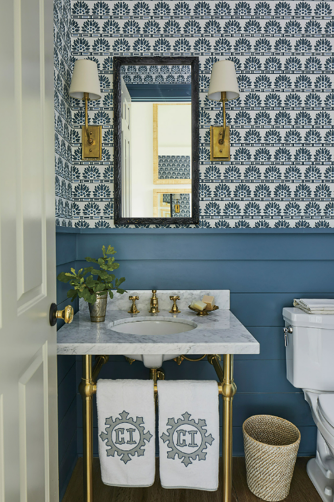 Because they don’t require the full functionality of a primary bathroom—there’s no need for a shower or tub—they’re the perfect canvas for bold, creative choices that might feel overwhelming in a larger space, like a pretty wallpaper pattern.