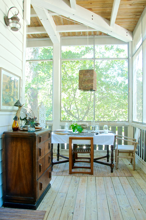 You’ve probably seen haint blue ceilings on front porches, but why not use a cool shade of blue on the ceiling of a screened porch?