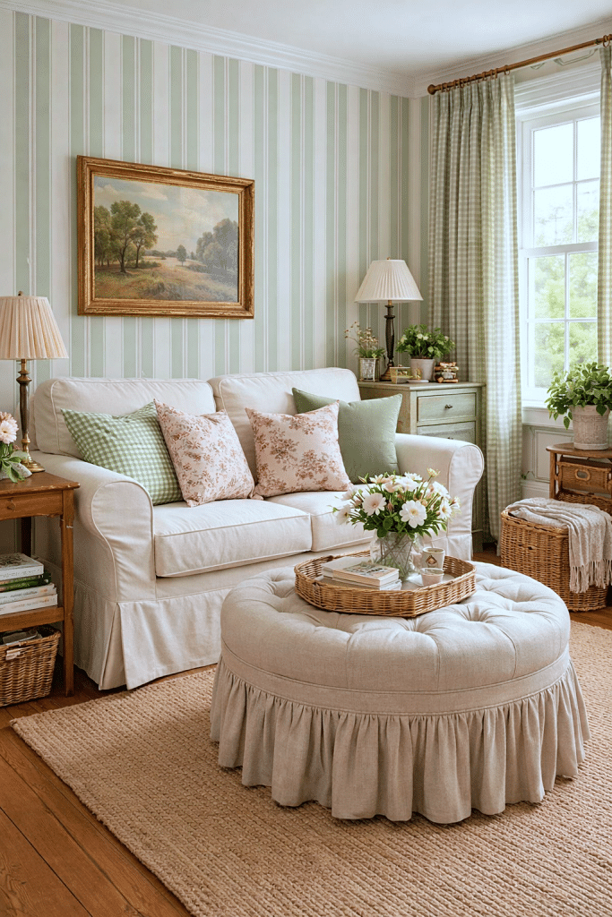 Small space decorating is the perfect opportunity to be bold in contained ways. A charming gallery wall, patterned wallpaper in a powder room, or a colorful accent chair can make the space feel intentionally designed rather than simply โsmall.โ Because the footprint is limited, you can splurge on special details without overwhelming the room, like this English style living room.