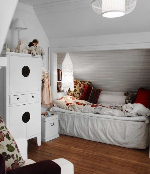 An alcove creates a unique bed for catching some shut-eye. Many Swedish homes have alcoves like this.